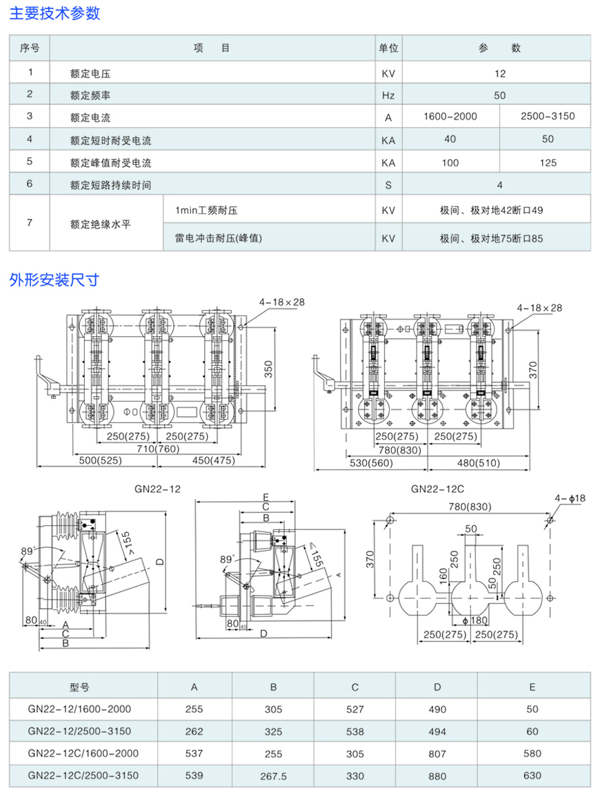 GN22-12系列戶內高壓隔離開關
