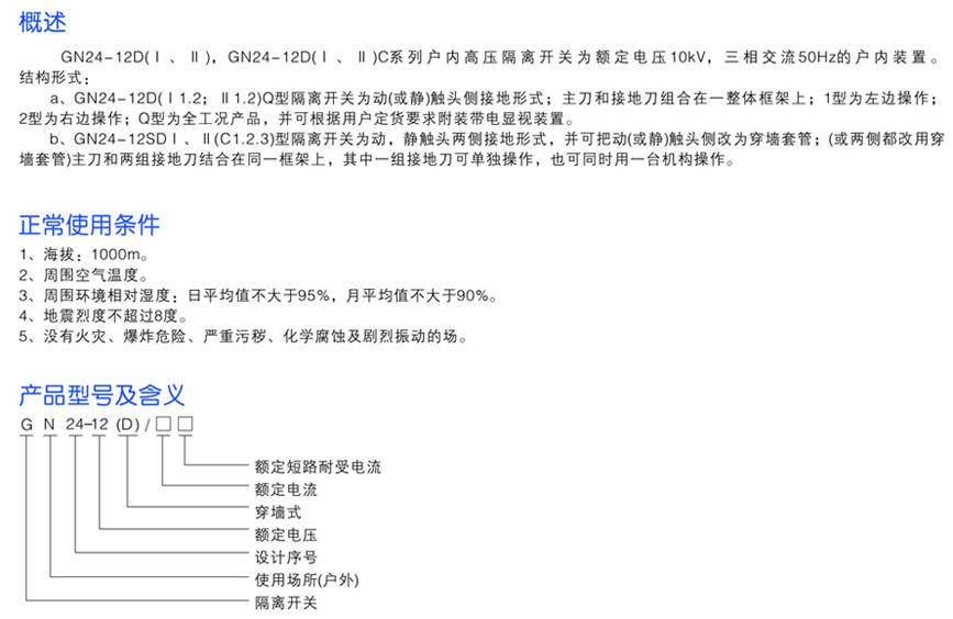 GN24-12D系列戶內高壓隔離開關