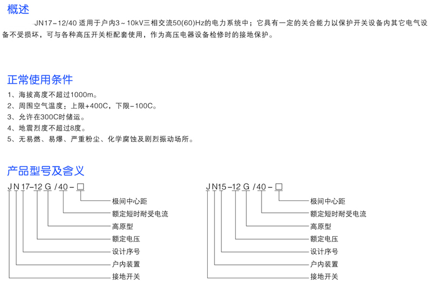 JN17-(JN15)12/40組合式戶內高壓接地開關
