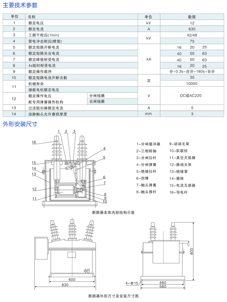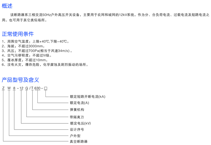 ZW8-12(G)/T系列戶外高壓交流真空斷路器